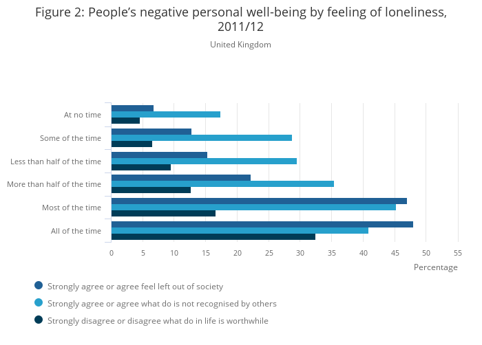Figure 2: People’s negative personal well-being by feeling of loneliness, 2011/12