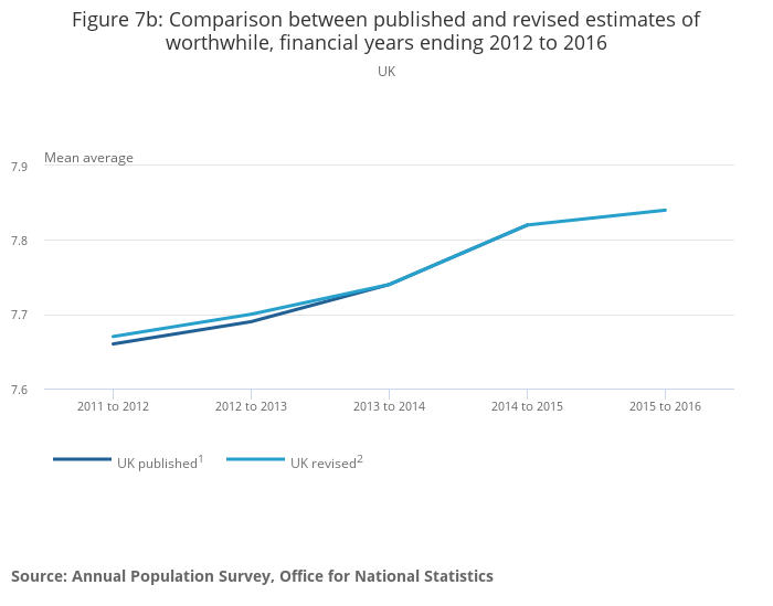 Download this chart Figure 7a: Comparison between published and revised estimates of life satisfaction, financial years ending 2012 to 2016
