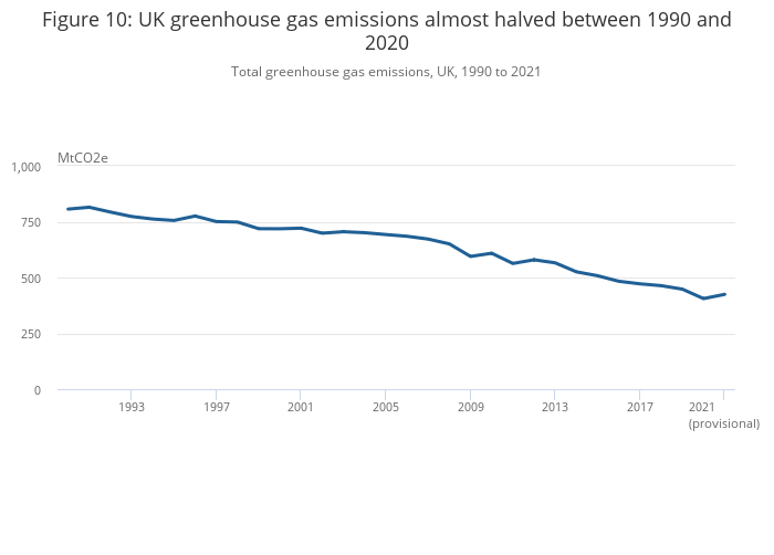Figure 10: UK greenhouse gas emissions almost halved between 1990 and 2020