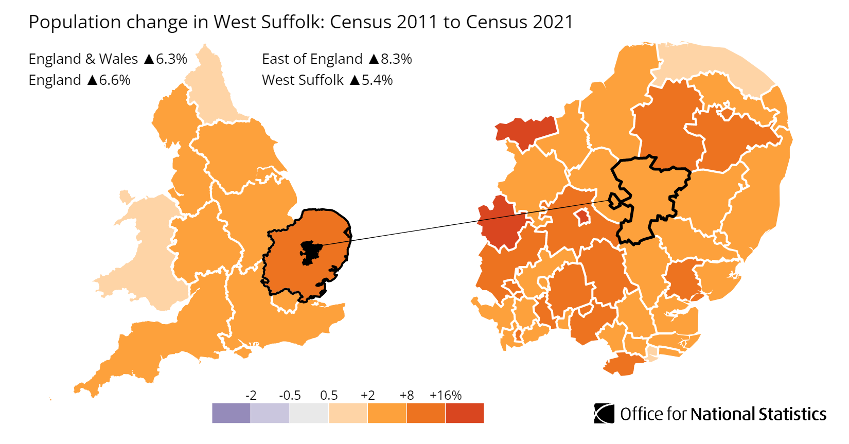 England ▲6.6% East of England ▲8.3% West Suffolk ▲5.4%| -2 | -0.5 | 0.5 | +2 | +8 | +16% |