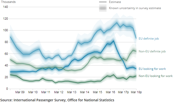 3. Non-EU immigrants arriving to look for work are likely to be accounted for by people granted visas for the Youth Mobility Scheme.